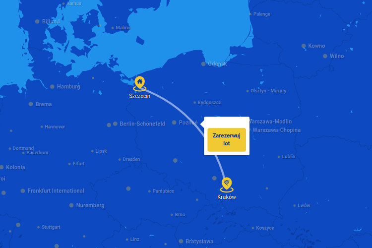 Regularne loty na trasie Kraków Balice (KRK) - Szczecin Goleniów (SZZ) odbywać się będą od 2 kwietnia 2019 roku. "Cieszymy się bardzo z wprowadzenia nowej trasy ze Szczecina do Krakowa. Połączenie zostanie uruchomione w kwietniu i zastąpi inną trasę krajową ze Szczecina do Warszawy." - powiedziała Olga Pawlonka, dyrektor sprzedaży i marketingu Ryanaira w krajach Europy Środkowo-Wschodniej i na Bałkanach. Trasa będzie obsługiwana 3 razy w tygodniu - we wtorki, czwartki i soboty. Na skróty